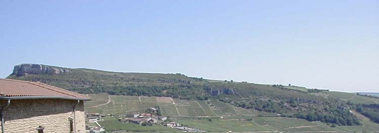 En regardant vers le Nord, la roche de Vergisson au relief monoclinal caractéristique, est découpée par au moins deux failles visibles, au pendage prononcé, en direction de l'Est, c'est à dire vers la plaine (cliquer sur la photo ci-dessous pour son interprétation). ![]() Il y a donc bien eu des mouvements tectoniques, mais il reste à déterminer la nature de ceux ci, ainsi que leur âge. | |